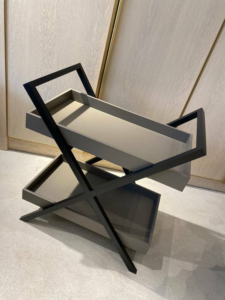 Ahşap malzemeden üretilmiştir, lake boyalıdır. Sipariş üzerine istenilen renk üretim yapılabilir. İstenirse ayağına tekerlek takılabilir.