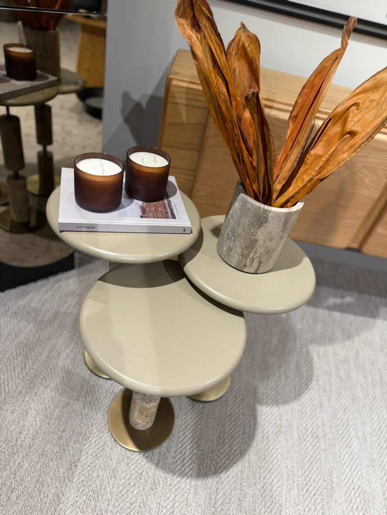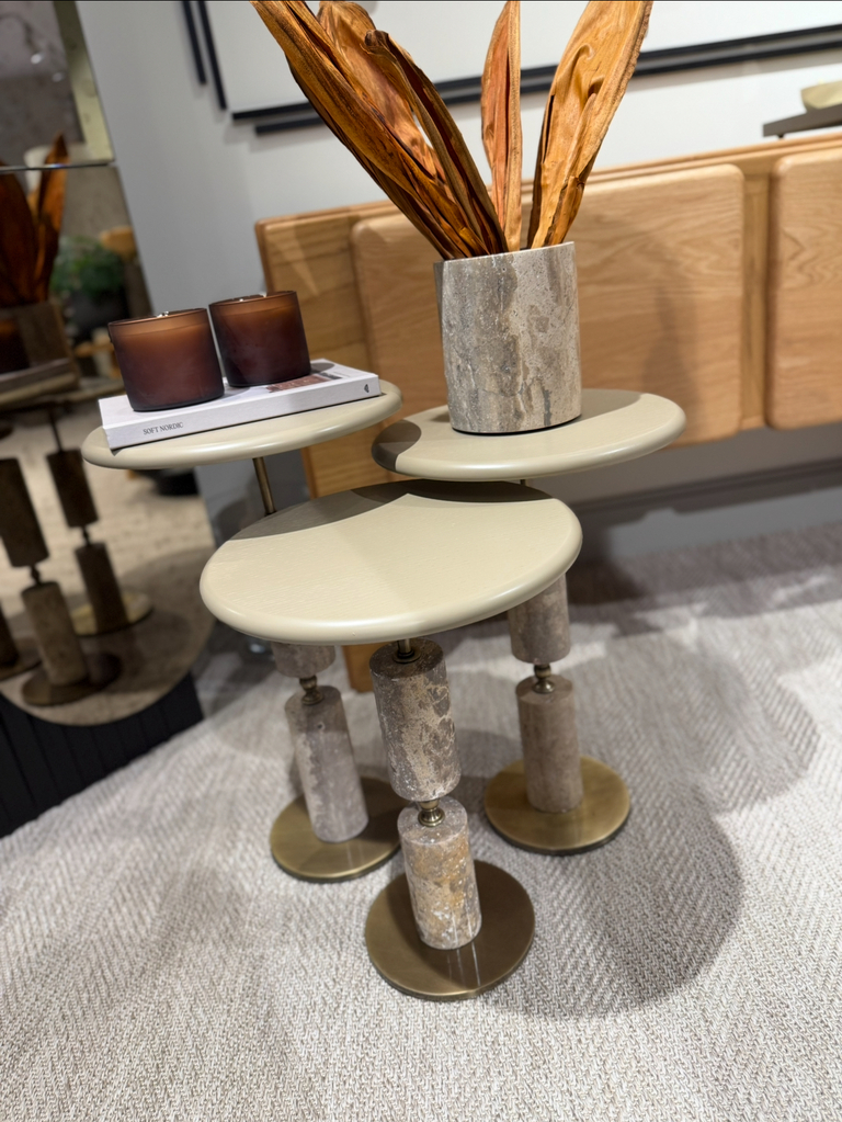 Mona Yan Sehpaların tabla çapı 35 cm, bitiş yükseklikleri 50cm-55cm-60cm'dir.
