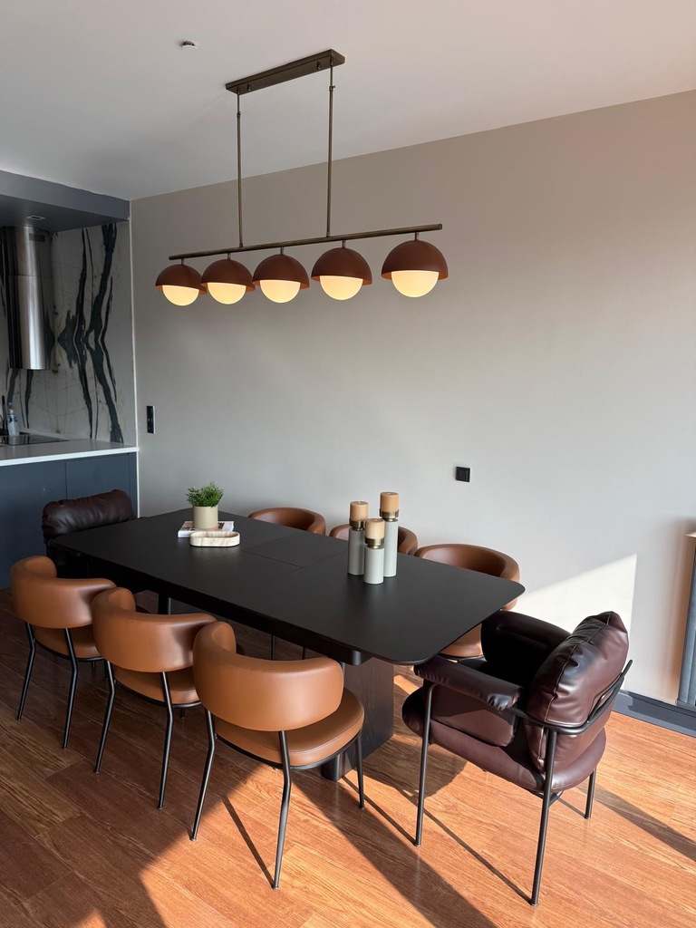 Görseldeki sandalye ve aydınlatma için fiyat sorabilirsiniz.