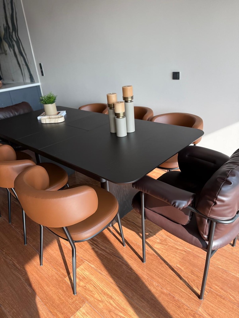 Görseldeki masanın içinden ek tabla çıkmaktadır. Ürün ölçüleri masa kapalı iken 180x100cm, iç parça eklendiğinde 220x100cm’dir.